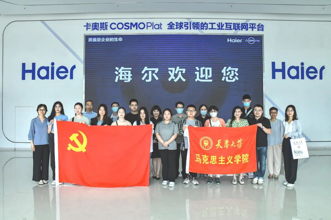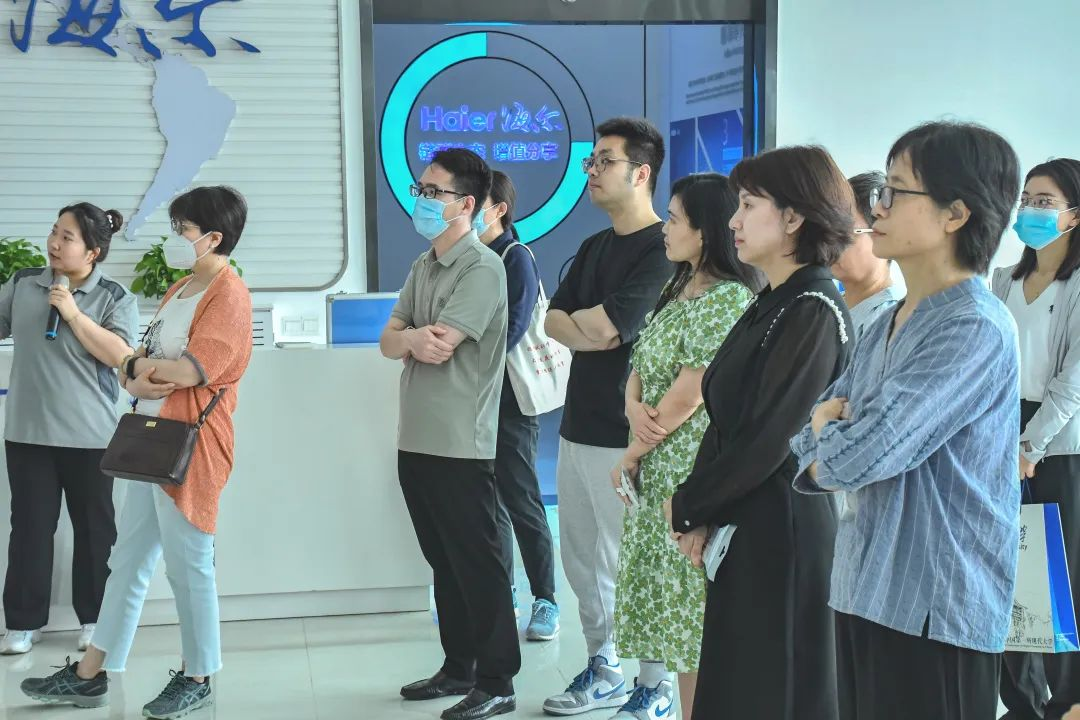 参观过程中,在海尔公司讲解员的带领下,师生党员们从展厅中领略洗衣机工艺发展历程,从工业发展史年表展览与现代智能洗护的独特场馆设计下感受历史发展脉搏与科技感的碰撞。从代替私人订制成为主流的大规模定制到自动投放洗衣液使根据衣物多少智能控制变量成为可能的智能洗护新科技,从洗护穿搭一体化人性化的衣联网到疫情期间通过链群生态精准对口消费者需求的预制品烤鸭销售量超过全聚德......这一切令师生纷纷感叹,展现着在“科技兴则民族兴,科技强则国家强”的时代,有这样一批紧跟时代风帆、推动科技创新的优秀企业正在砥砺奋进、不断向前。