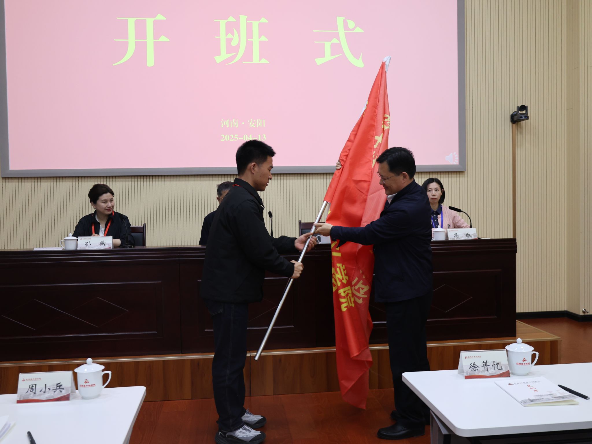 4月13日学员们到达红旗渠干部学院后第一时间举行开班仪式,红旗渠干部学院常务副院长鲁红杰致辞讲话,颜晓峰院长做动员讲话,要求全体师生党员要珍惜此次培训机会,深入领悟伟大红旗渠精神的精神内涵,做到学有所思,学有所获,真正继承和发扬红旗渠精神,将红旗渠精神融入到思政课教学当中。吕帆代表学院接受班旗,实践学习正式开启。