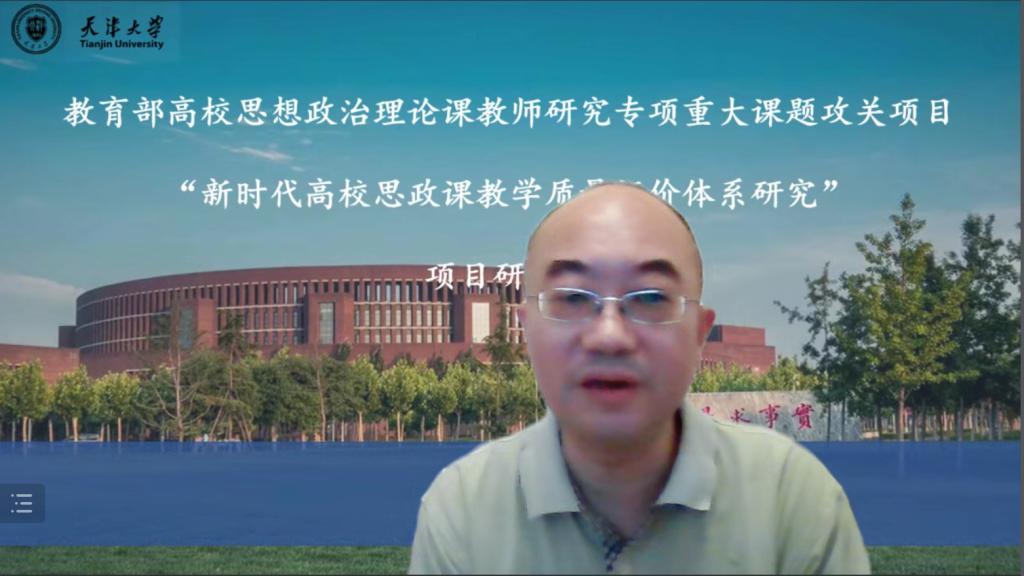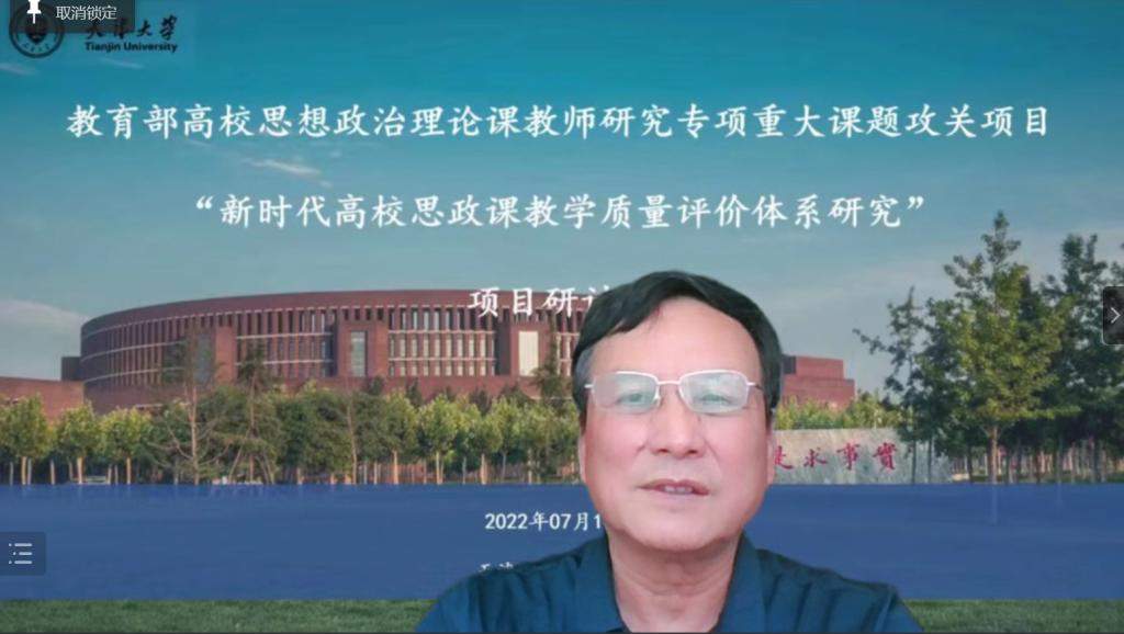 2022年7月11日上午9时,教育部高校思想政治理论课教师研究专项重大课题攻关项目“新时代高校思政课教学质量评价体系研究”项目研讨会采用线上线下相结合方式,在天津大学科学图书馆一层报告厅成功举办。