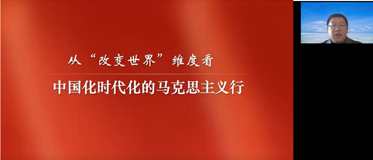 随后,天津师范大学马克思主义学院教授、副院长贾丽民从“改变世界”维度看中国化时代化的马克思主义行为核心,深度剖析了哲学不仅在于解释世界,还在于改造世界的观点。并从深刻理解党的二十大报告的角度阐释了“马克思主义为什么行”。