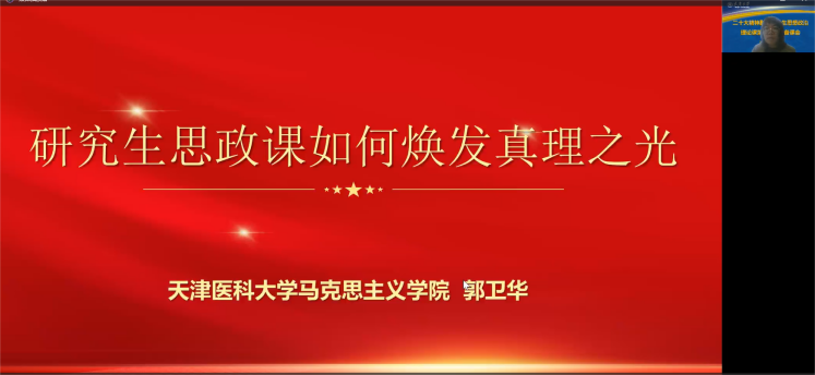 天津医科大学马克思主义学院教授、党委副书记郭卫华以党的二十大报告中“开辟马克思主义中国化时代化新境界”为视角,详尽解读了研究生思政课如何焕发真理之光。她从研究生思政课的教学要求、价值关怀以及学理期待三个方面对教育教学提供宝贵经验,并指出思政课的学理期待要坚持学术性与政治性的有机统一。
