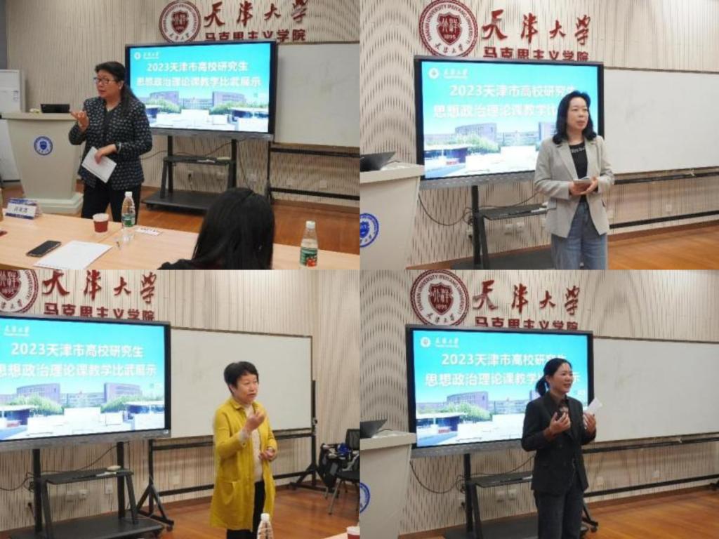 通过随机抽签,来自天津农学院教师王敏、天津城建大学教师高建华、天津城建大学教师杨贺、天津商业大学教师管西荣、天津科技大学教师杨静逸、中国民航大学教师田蕊、天津商业大学教师武强、天津工业大学教师李倩、天津农学院教师陶亚敏和天津职业技术师范大学教师张永勇依次上台展示,分别从全过程人民民主、自我革命、生物多样性、和美乡村等主题展开课程内容,充分结合了习近平新时代中国特色社会主义思想和党的二十大精神。