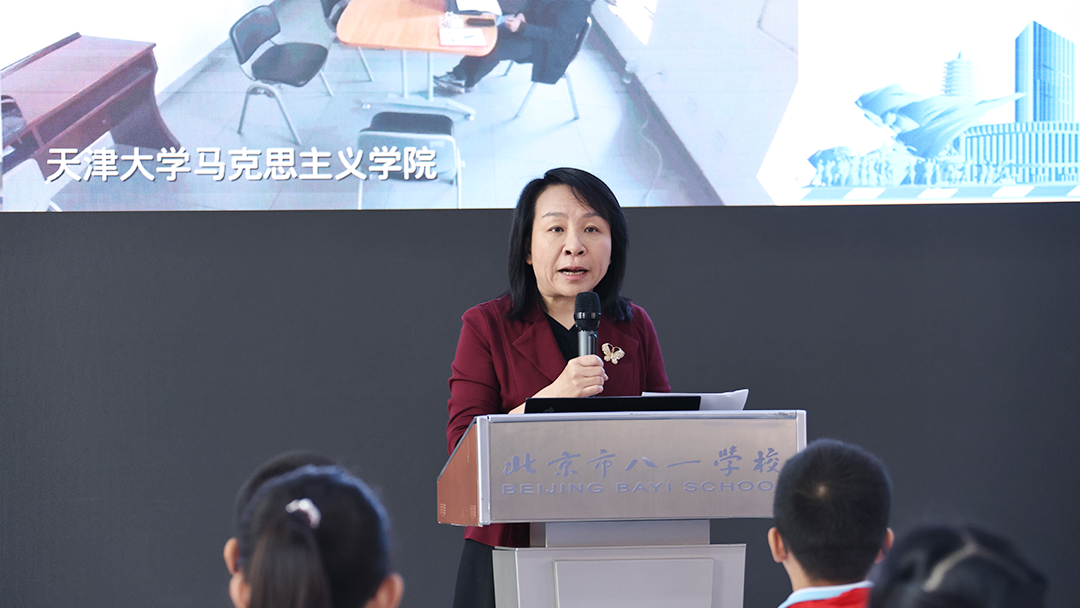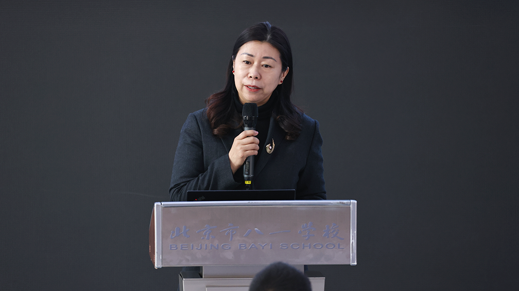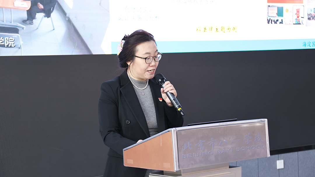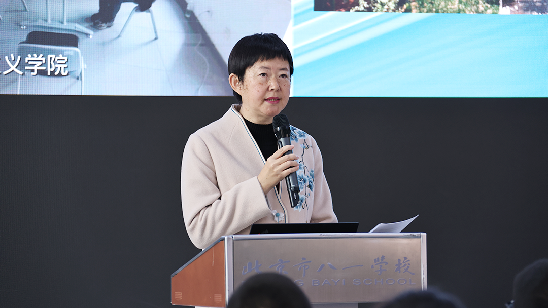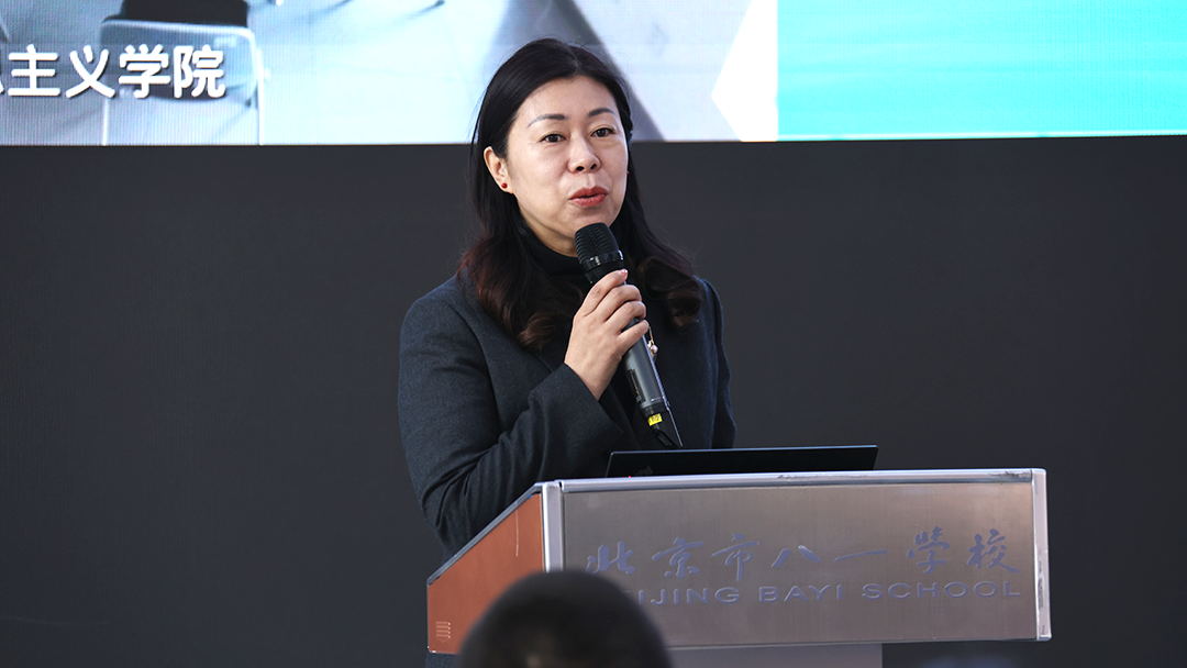 她回顾了近年来八一学校思政课堂的创新实践:2019年12月,八一学校同京冀新三地五校中小学生同上“祖国故事会”精品思政课,探索跨区域线上思政课学习模式;2020年6月,召开四地十校八一军旗红主题思政课,通过组织教育的大载体,实现培养社会主义建设者和接班人的育人目标;2021年7月,小初高三个学段的思政教师,设计拍摄《读史明志、薪火相传》党史专题片,为思政课实践提供有效支持;2021年9月,学校针对《习近平新时代中国特色社会主义思想学生读本》专题教学,分学段开展了系列教学研究;2021年4到10月,组织两轮思政话剧《前夜》创作和演出;2021年12月针对“依法治国”主题,联合北京师范大学马克思主义学院共同研究,开展了“良法善治,护航美好生活”的示范课研讨;2022年3月联合五地六校在光明网上一起组织了“从冬奥会看人类命运共同体”的思政活动课;2022年3月,八一学校小初高三个学段联合国际关系学院开展了“国家安全主题”的云端示范课;2023年12月,联合中国人民大学,召开“纵古贯今、文明共传承”思政课一体化现场展示课活动,大中小学段学生、教师同上一个主题,开启先河。