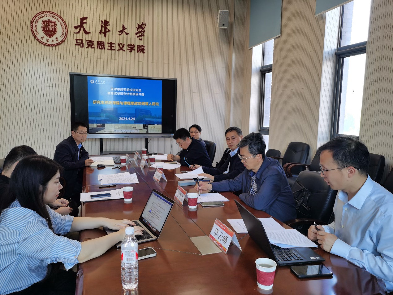 为深入贯彻党的二十大精神,全面落实习近平总书记关于研究生教育重要指示精神,大力推进研究生教育的理论创新、制度创新和实践创新,天津大学马克思主义学院于2024年4月24日召开了2023年天津市高等学校研究生教育改革研究计划项目开题报告会。南开大学马克思主义学院教授、副院长孙寿涛、天津师范大学马克思主义学院副教授吴建永、天津大学教育学院教授马廷奇、天津大学马克思主义学院教授柳洲、天津大学马克思主义学院副教授李云峰作为评审专家出席会议。项目组成员参加了会议。