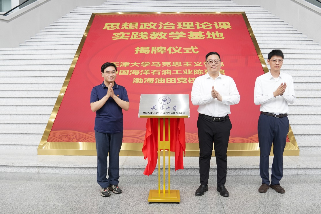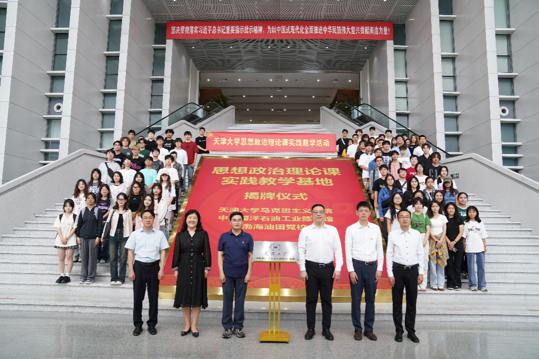 为深入学习贯彻习近平总书记关于学校思政课建设的最新重要指示精神,守正创新推动思政课建设内涵式发展,不断提高思政课的针对性和吸引力,6月14日上午,天津大学思想政治理论课实践教学基地揭牌仪式在中国海洋石油工业陈列馆举行,并开展了基地首场实践教学活动。中国海洋石油工业陈列馆馆长张喆、渤海油田党校副校长李成明,我校马克思主义学院副院长张宇,形势与政策教研部主任柳洲、教师李依霖,以及陈列馆相关同志、我校学生代表共百余人参加了活动。
