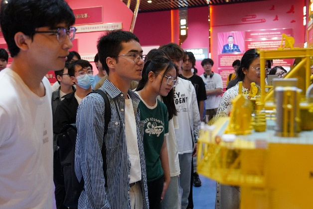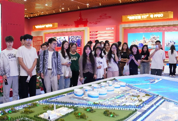 揭牌仪式后,在基地内开展了首场实践教学活动。通过参观展品、听取讲解、亲身体验,在场同学们深刻了解了中国海洋石油党的建设情况、建设发展历程、科技自立自强和能源报国的精神。同学们纷纷表示,今天这堂思政课别开生面、有趣有料、内涵深刻,将牢记习近平总书记对青年学生的殷殷嘱托,努力成长成为让党放心、爱国奉献、担当民族复兴重任的时代新人。