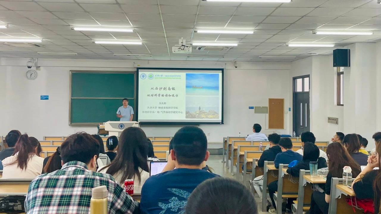 近日,受马克思主义学院副教授、第十二期优秀青年教师暑期实践营营员黄晓伟邀请,地球系统科学学院副教授、地理科学系副主任、第十二期优秀青年教师暑期实践营营员吴礼彬走进我校研究生思政课《自然辩证法概论》课堂,为未来技术学院、生命科学学院、微电子学院等相关专业的130余名研究生带来了一场题为《从西沙到南极:地球科学的诗和远方》的精彩讲座。讲座由马克思主义学院青年教师晋晓晓主持。