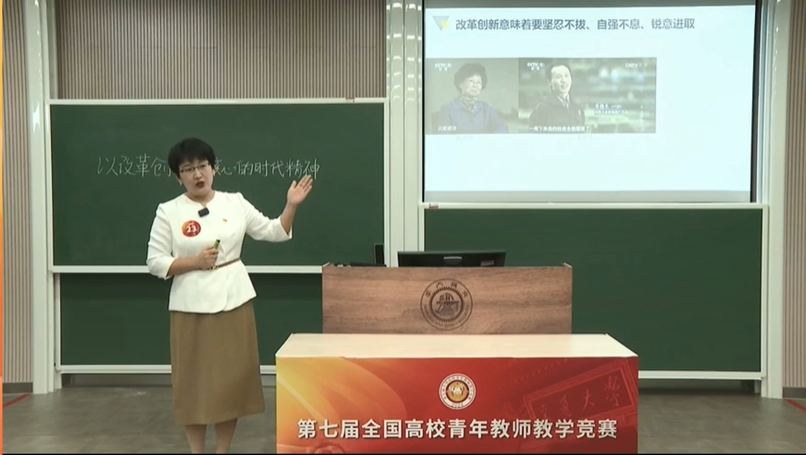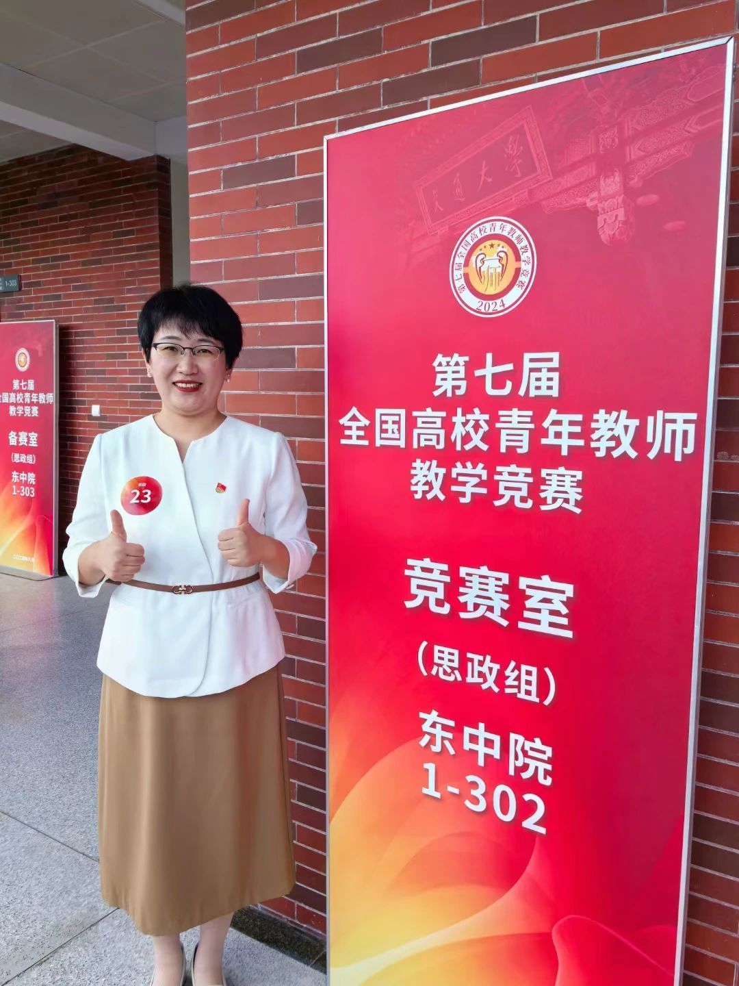 经过半年多的精心筹备,她将自己对思政课教学的理解充分展示出来,从课程设计到课件制作,从时间把握到每一个地方的语气神态,甚至是参赛服装上缝制的固定收声设备的“小心思”,无不体现了她备赛过程中的细致入微。多次学院和校内外专家、教学竞赛优秀选手的悉心指导,让她能够不断从中吸取经验,经过一遍遍打磨、一次次修改,以及每天10余个小时的刻苦演练,方才有了今天近乎完美的呈现,也让她收获了更多成长与经验。