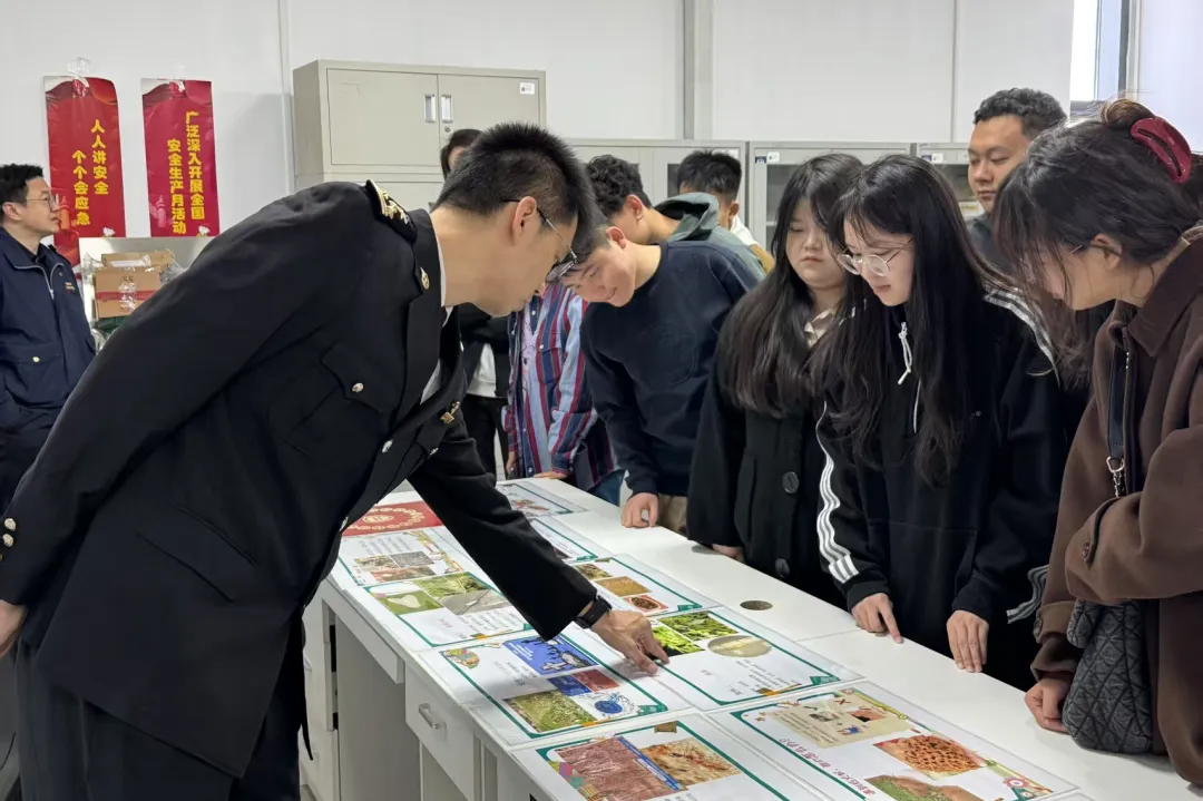 在海关邮局作业大厅,工作人员详细讲解了国际邮包查验的标准化流程。从X光机扫描到人工开箱,从生物样本检测到违禁品拦截,每一步都如同精密齿轮守护着国门安全。“一个普通邮包可能藏着生态危机的种子!”海关工作人员展示的非法入境植物种子、濒危动物标本等查获物,让师生们直观感受到“邮路安全无小事”的深刻内涵。