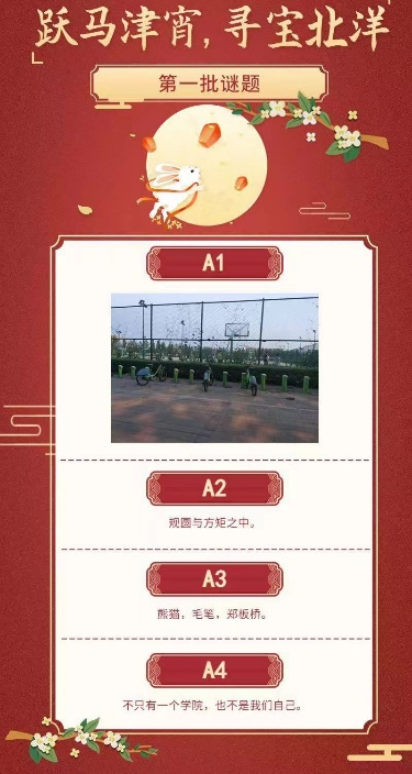 跃马津宵,寻宝北洋。喜逢中秋,也正值校园好风景,温暖徐风带来一封来自中秋的寻宝回信:2022年9月10日中秋节,一场有趣的校园寻宝比赛正在天大校园内进行得如火如荼,自行车轮疯转,行人步履匆匆,一场师生共进的比赛来得紧张刺激。