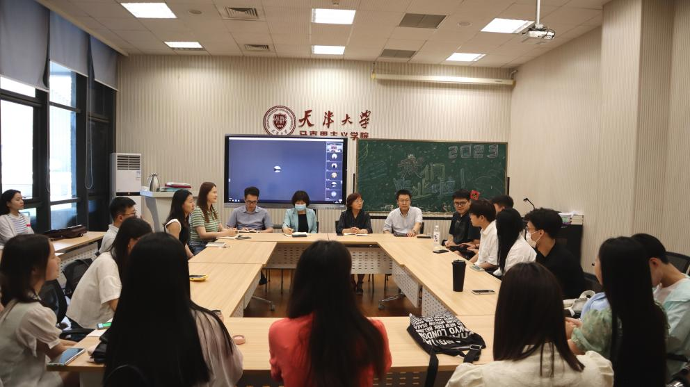 6月16日下午2:30,天津大学马克思主义学院2023届研究生毕业座谈会在马克思主义学院154召开,会议以线上线下相结合的方式进行。马克思主义学院院长颜晓峰,党委书记孙鹤,副院长杨文圣,副院长马明,党委副书记靳莹,辅导员刘楠、张鹏越及马克思主义学院2023届硕士毕业生参加会议。会议由辅导员刘楠主持。