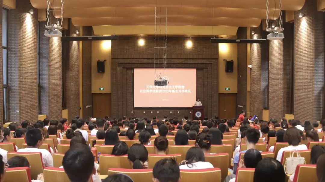 2023年9月6日,天津大学马克思主义学院暨社会科学试验班2023年新生开学典礼在北洋园校区求实会堂207报告厅隆重举行。马克思主义学院院长颜晓峰、党委书记孙鹤、副院长杨文圣、副院长马明、党委副书记靳莹,经管学部副主任郑春东、党委副书记刘钰;法学院副院长蓝蓝、党委副书记杨漫路,教育学院副院长夏军、党委副书记冯天强及建筑学院、经管学部、法学院、教育学院、马克思主义学院的专业负责人、导师和师友导师代表参加了此次典礼。开学典礼由靳莹主持。