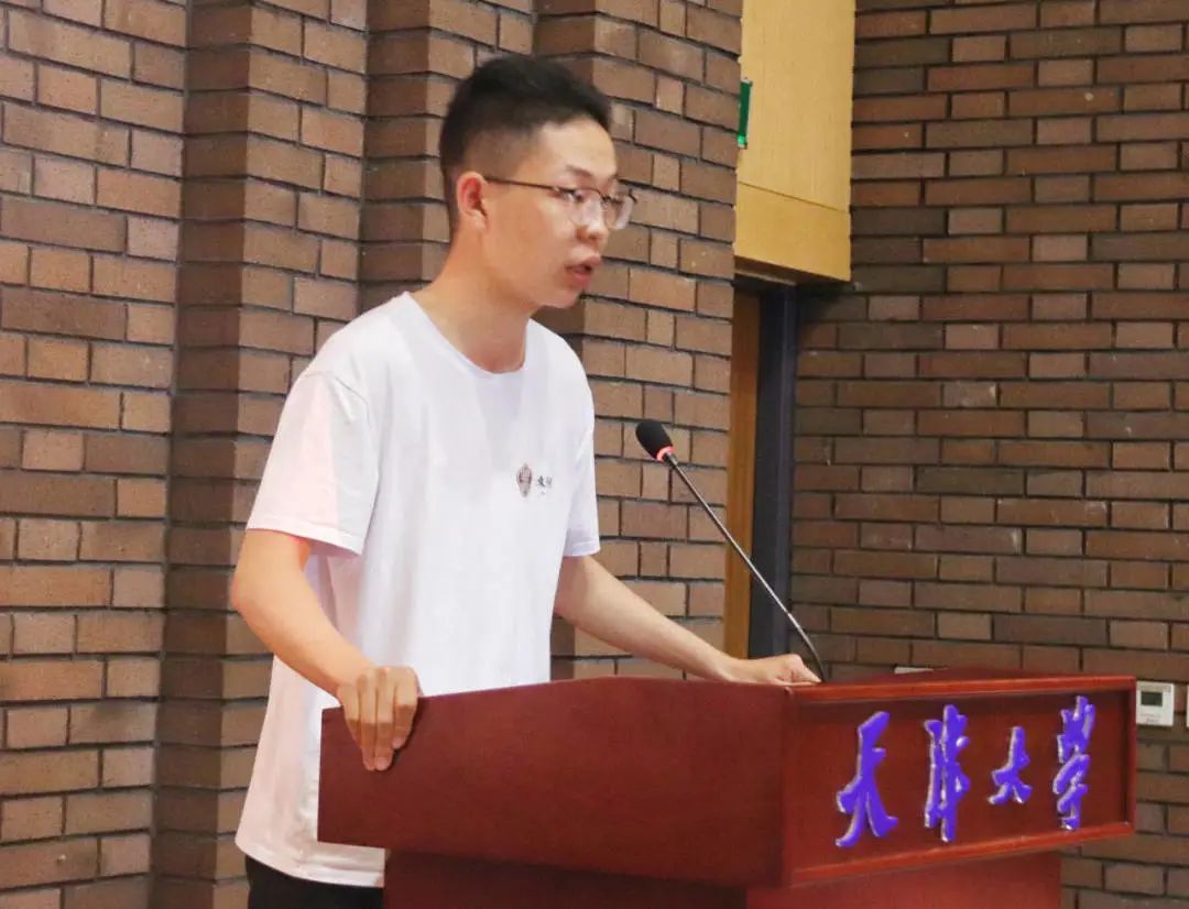 法学院专业教师、师友导师代表薛杨结合张太雷,赵天麟等先辈事迹,鼓励同学们学贯中西,学以致用,坚定“兴国强学,矢志创新”。“教育应基于爱,学习应追求真理”。薛杨结合自己的求学经历,向同学们提出以下建议:一要立天大胸怀,为人民谋幸福,为民族谋复兴;二要传承天大“实事求是”的校训,走好人生路;三要勇于担当,爱国奉献,将小我融入大我。
