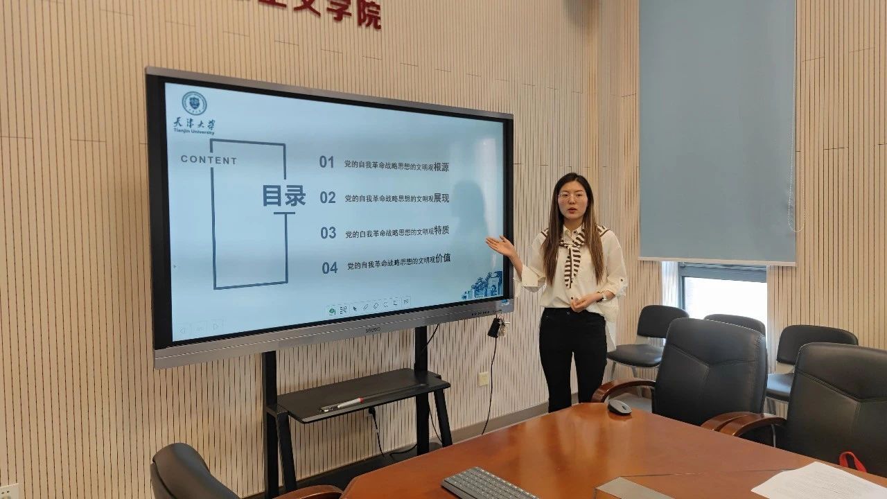 5月29日,第十六期“天马”博士生论坛在天津大学马克思主义学院举行。学院王丹彤老师出席并进行指导,2023级博士研究生徐龙泗主持论坛,2023级博士研究生刘春洁、2023级博士研究生张双双担任本期论坛主讲人,学院2023级博士研究生参加论坛。
