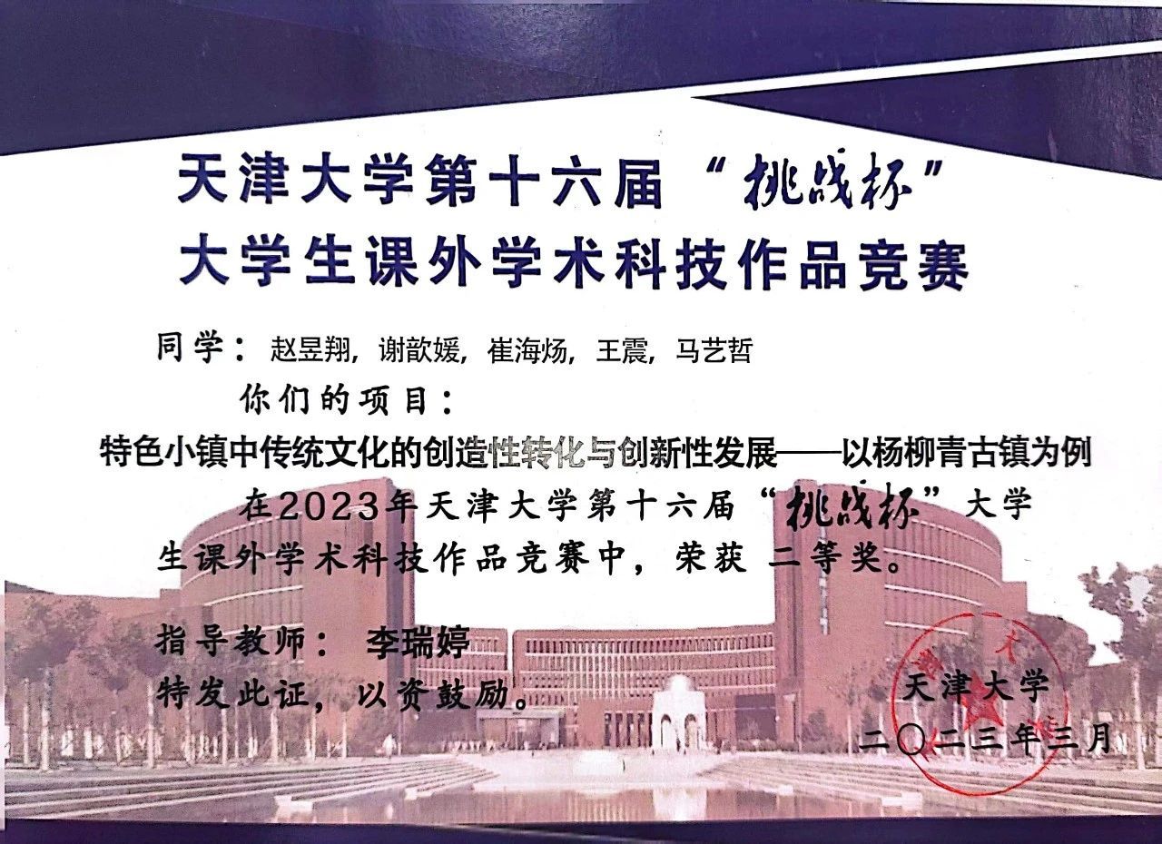 从刚刚步入大学第一学期的82.86,到初入马院的85.76,再到大三加权93.34,单学年专业排名第一,四年来我坚信只要打牢基础,总有机会成为最亮明月。两年期的“VR智慧党建亭的建设与应用”大创项目研究,已完成终期答辩和产品应用,我与团队的项目“特色小镇中传统文化的创造性转化与创新性发展”,荣获马克思主义学院社会实践报告一等奖以及天津大学第十六届挑战杯二等奖。