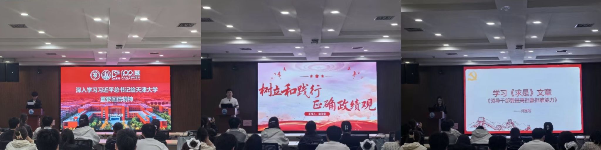 为深化理论武装、凝聚学科合力,引导青年党员树立和践行正确政绩观,4月10日,天津大学化工学院2024级硕士生工程第四党支部联合马克思主义学院2025级硕士生第二党支部、教育学院本科生党支部,于50教A332开展主题党日活动。活动以“联学共建聚合力,深学细悟强担当”为主题,开展跨学科、跨年级联学共建,推动思想碰撞、互学互鉴、共促共进。