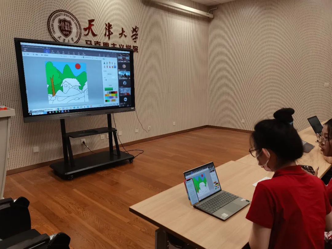 第三组的贾甜甜和金梦露为同学们带来了兴趣专题授课。两位同学以互动的形式开展课程,向小朋友们展示现代中国的发展历程,引导同学们对空白的图画进行填色,以此达到寓教于乐的目的,提升了小朋友们对绘画的兴趣。