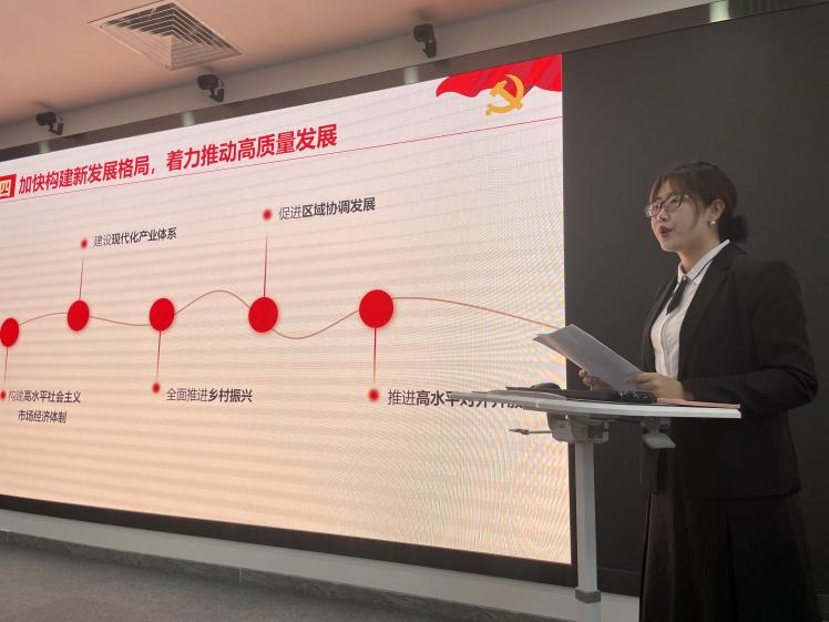 接着,马克思主义学院2021级本科生团支部成员车雨轩、冯天怡借助VR大屏,为大家讲解了梁家河知青故居——文安驿、淤地坝、知青井等场景,见证了当时青年们团结一致,艰苦奋斗的上山岁月,激励大家在勤奋学习、躬身实践中开辟新的未来。马克思主义学院2021级本科生团支部书记高萌以虚实结合的方式,用饱满的热情带领大家走进东北烈士纪念馆,从中国近代东北人民顽强的奋斗史中激发爱国热情。三位同学化身红色讲解员,通过生动的讲说,带领大家感悟初心使命、传承革命精神,帮助大家深刻认识到中国共产党为什么能、马克思主义为什么行、中国特色社会主义为什么好,坚定“四个自信”,做中国特色社会主义的坚定信仰者、忠实践行者和坚强捍卫者。