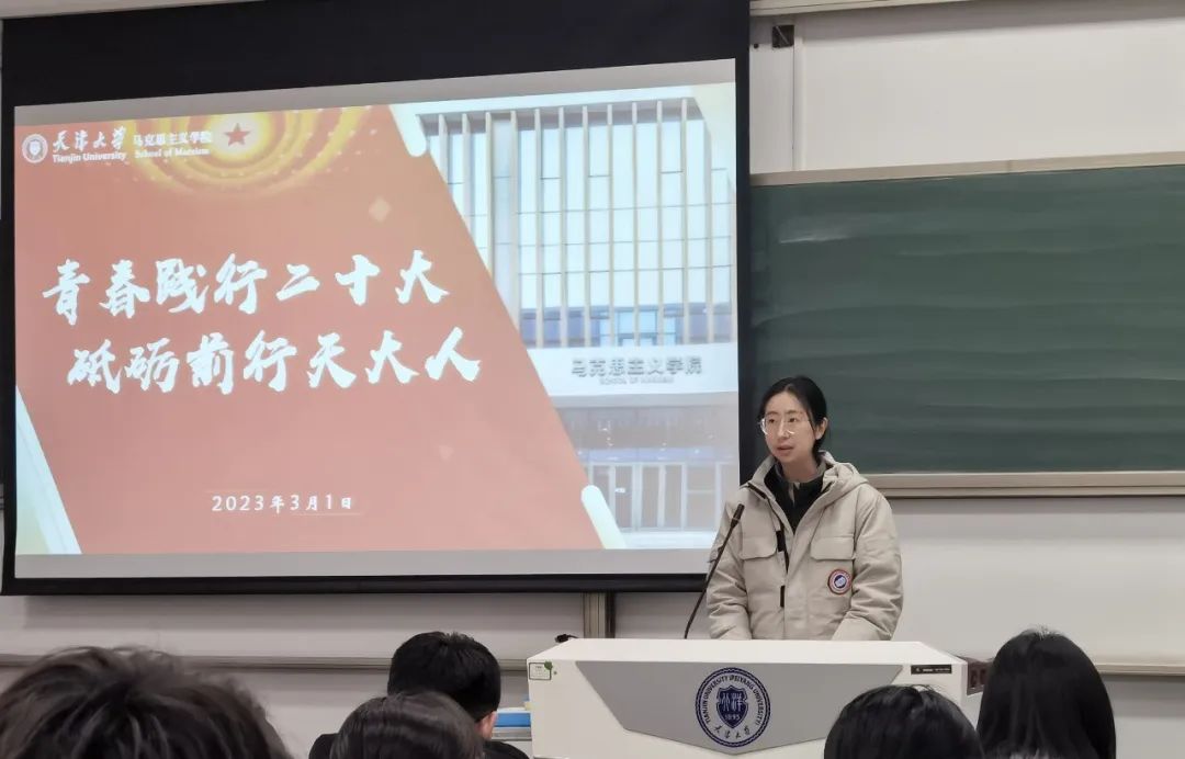3月1日,马克思主义学院开展“青春践行二十大 砥砺奋进天大人”开学第一课活动,学校第十一次党代会代表,学院党委副书记副院长靳莹、博士研究生黄天罡与马克思主义理论专业本科生们进行了深入学习交流,共同学习贯彻党的二十大精神和学校第十一次党代会精神。