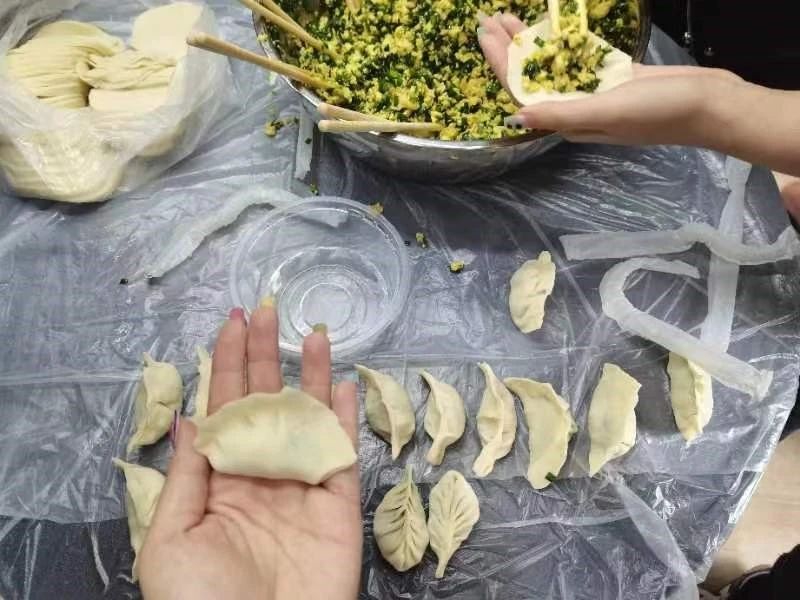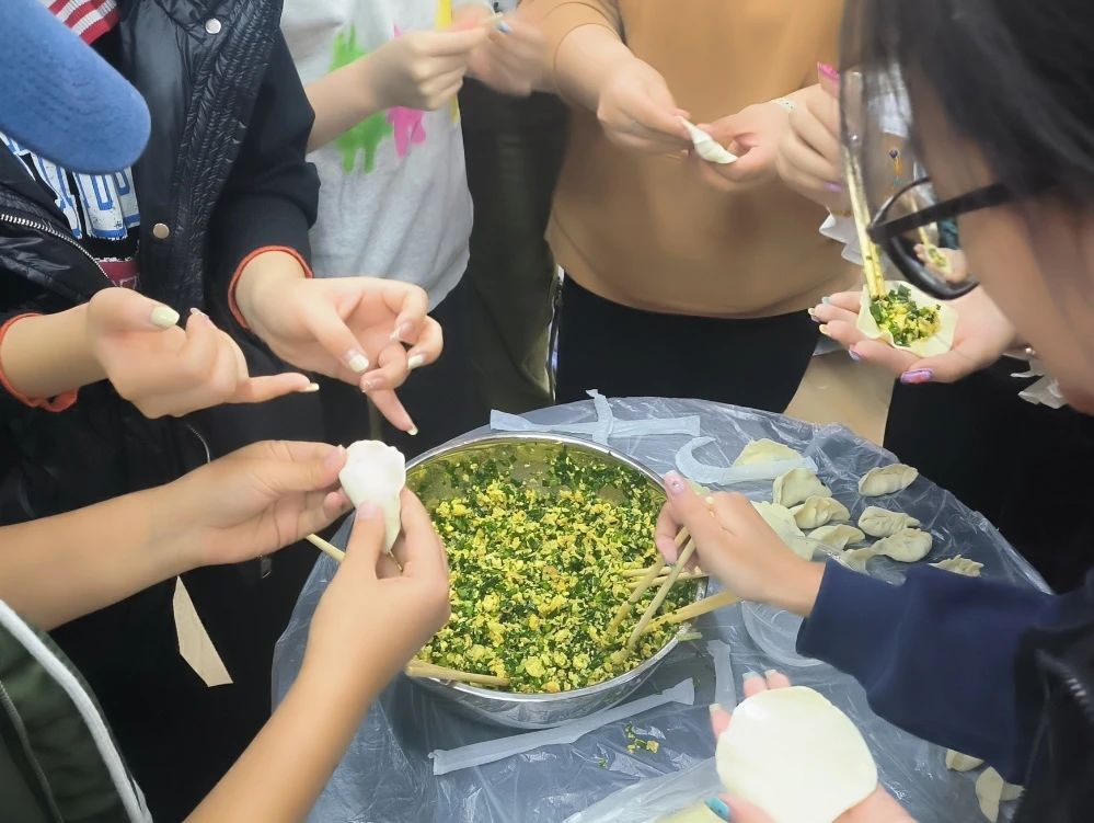 大家分工明确,共同协作,老师向同学们分享包饺子的经验技术,同时互相送上立冬时节的美好祝福。现场氛围热闹又温馨,到处洋溢着家的味道、家的温暖。