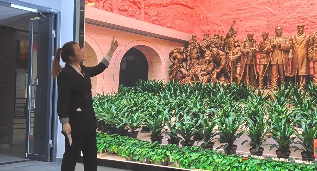 接着,马克思主义学院红色场馆讲解员车雨轩带领大家走进延安革命纪念馆,跟随总书记的脚步共同学习和感悟伟大的延安精神。车雨轩为大家依次讲解了延安革命纪念馆前广场上的“高瞻远瞩”铜像,入馆台阶,以及《延安十三年》中的南泥湾展区,结合毛泽东同志等老一辈革命家在延安住窑洞、吃粗粮、穿布衣,用“延安作风”打败了“西安作风”的场景画面,带领在场的老师同学们走进大生产运动的艰辛历程,体悟延安精神中实事求是、理论联系实际、全心全意为人民服务、自力更生艰苦奋斗的深刻内涵,进一步激励22级新生同学立足新基点,脚踏实地、肯干实干,在追求为人民服务的过程中,将自身的价值同人民的幸福、国家的前途紧密地联系在一起。
