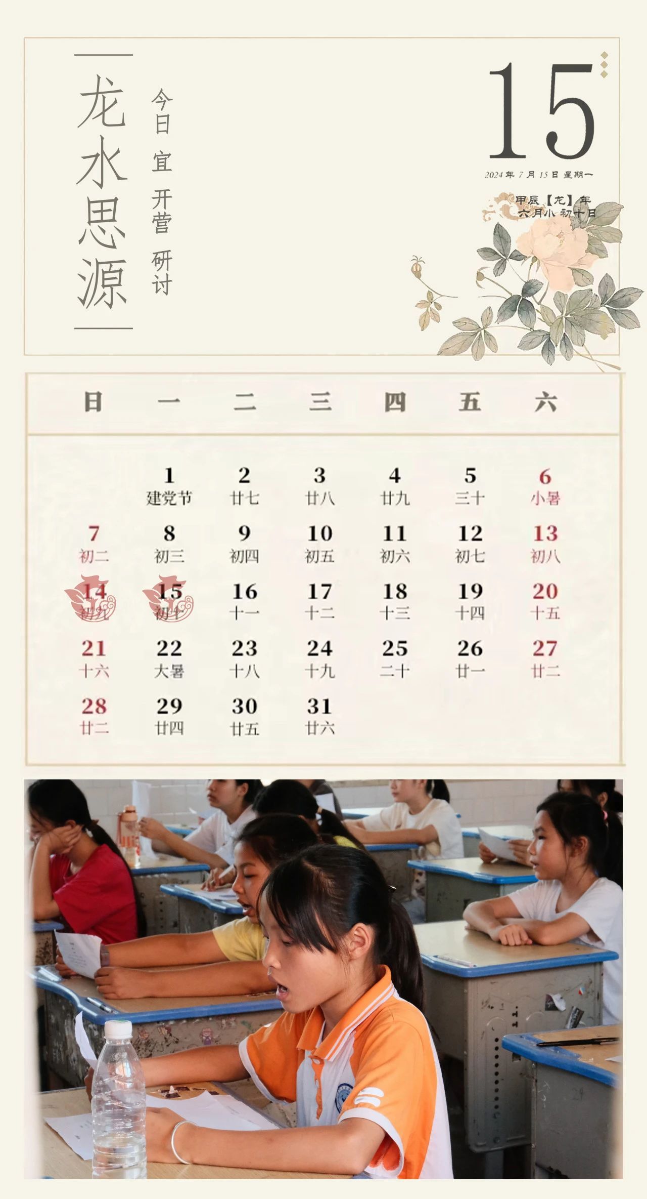2024年7月15日上午,龙水思源实践队与龙水小学暑期夏令营开营仪式暨全州县教育局与龙水思源实践队大中小学生研学经验交流研讨会在龙水小学举行。龙水小学是天津大学马克思主义学院在全州县建立的第一个实践基地。