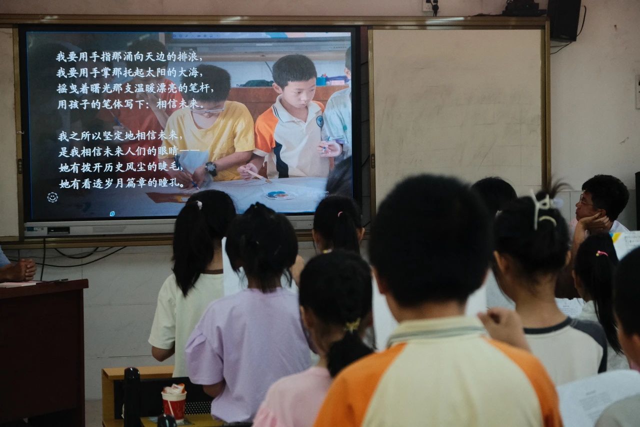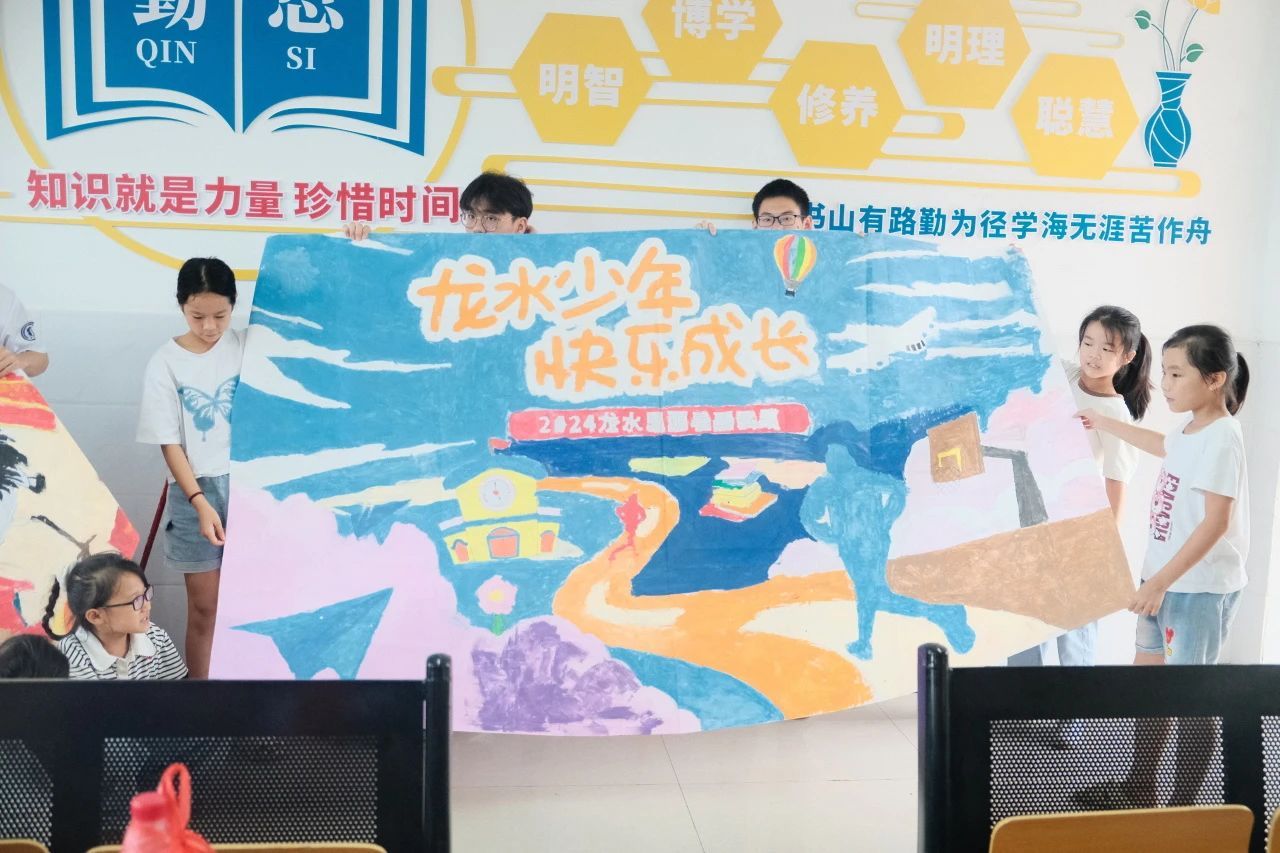 在结营仪式上,龙水小学的同学们向老师们展示了课程“大画卷”的成果。学生代表向大家介绍两幅画卷,表达了对中国发展昌盛与孩子们快乐成长的祝愿,希望未来大家能够快乐成长,为国家发展提供自己的力量。