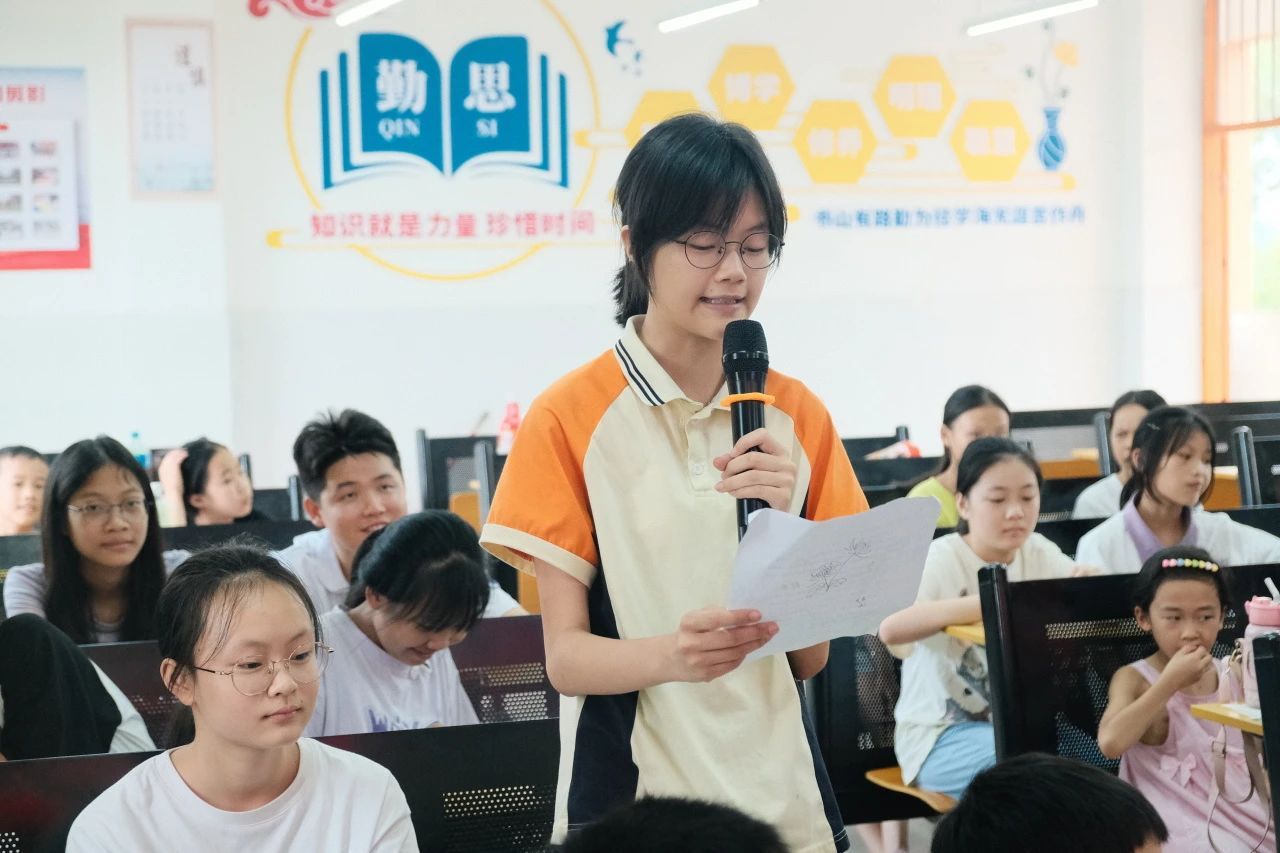 夏令营学生代表王佳妮在仪式上发表感想。同学们在此次夏令营中体验了各式各样的课程,学到了各种新奇的知识,在未来的日子里,这些知识也将成为同学们前进的力量。她在感想最后说道:“让我们带着夏令营的收获,勇敢地迎接未来的挑战,成为更好的自己!”