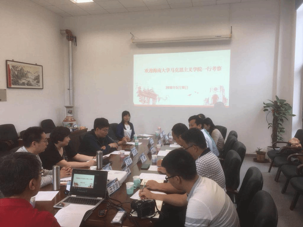 2018年5月10日,海南大学马克思主义学院李辽宁院长一行到我院调研,双方教师在学院会议室召开了座谈会,校党委宣传部部长贾启君、马克思主义学院相关领导及教师代表参会。