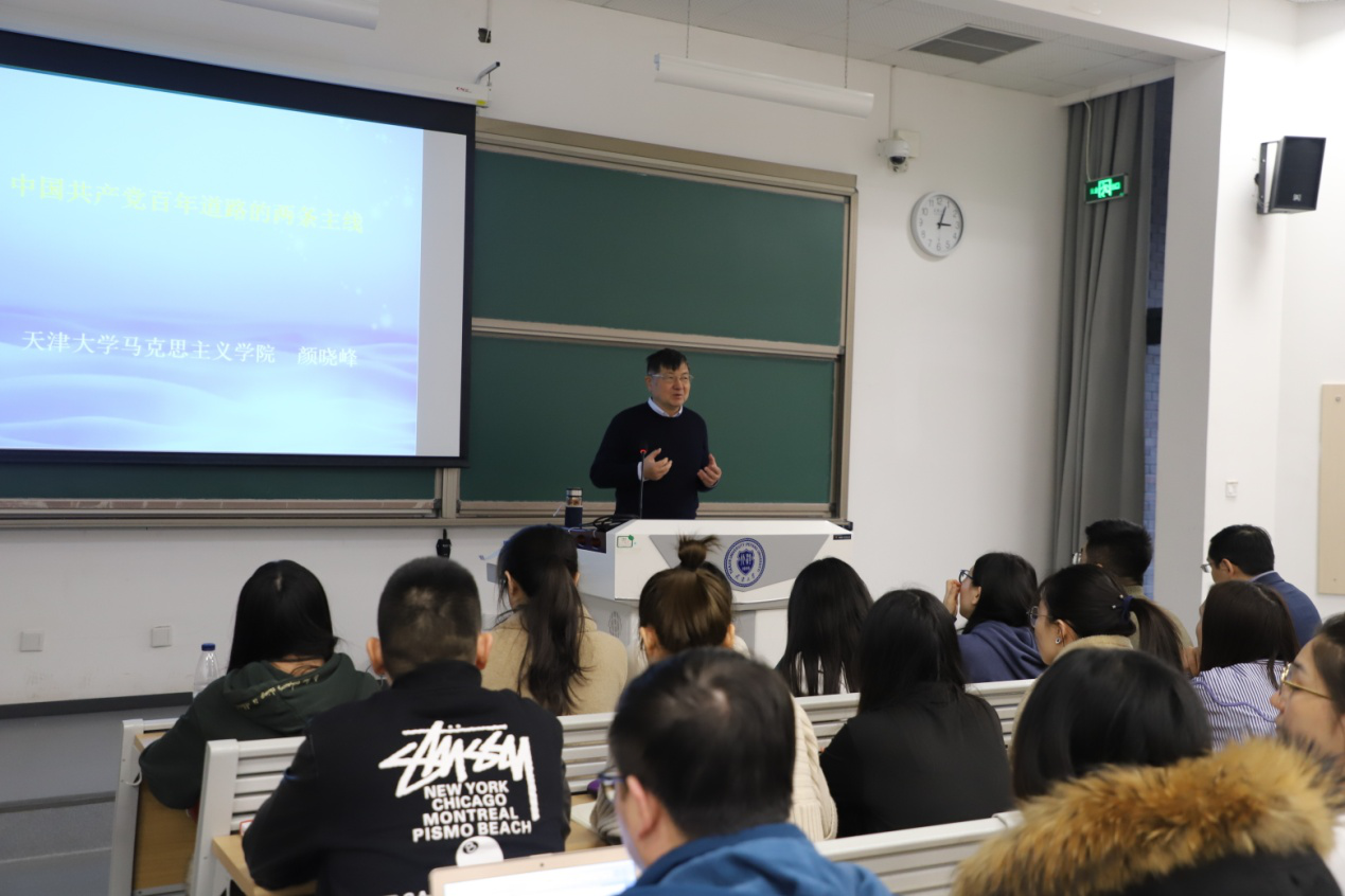 12月16日,东北师范大学思想政治教育研究中心执行主任高地带领的研究生访学团一行40人到天津大学马克思主义学院交流访问,天津大学马克思主义学院院长颜晓峰带领师生们参观了学院和张太雷同志革命事迹展,并作了题为《中国共产党百年道路的两条主线》的主题报告。学院思政课教师,辅导员和2019级硕士生们与来访师生围绕教学、科研、人才培养等问题展开了交流和研讨。