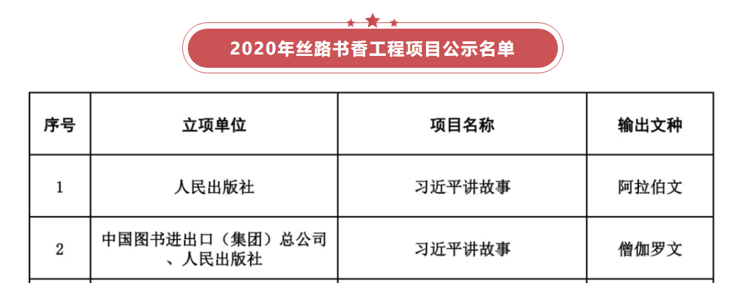 丝路书香工程是中国新闻出版业唯一进入国家“一带一路”倡议的重大项目,旨在推动体现国家意志、代表国家水准、传承中华文明、反映时代风貌、适于国际传播的中国主题出版物在“一带一路”沿线国家的翻译出版。