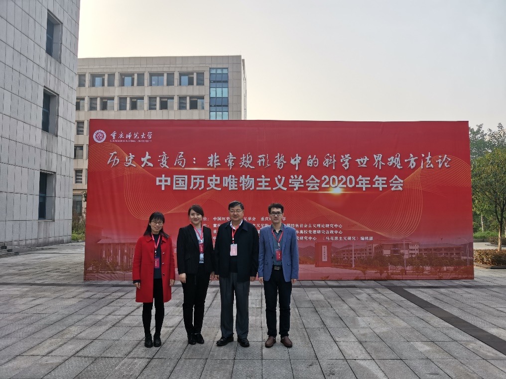 11月6日至8日,天津大学马克思主义学院院长颜晓峰率队参加由中国历史唯物主义学会、重庆师范大学联合主办,重庆师范大学马克思主义学院承办的中国历史唯物主义学会2020年年会。马克思主义学院教师刘娜、马明、屈婷共同参会。来自全国各高校、党校和社科研究机构的120余名专家学者共聚一堂,围绕“历史大变局:非常规形势中的科学世界观方法论”这一主题进行研讨交流。重庆师范大学党委副书记、校长孟东方致辞。中国历史唯物主义学会会长侯惠勤致辞并作主旨报告。