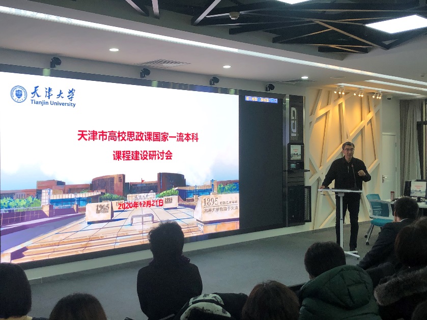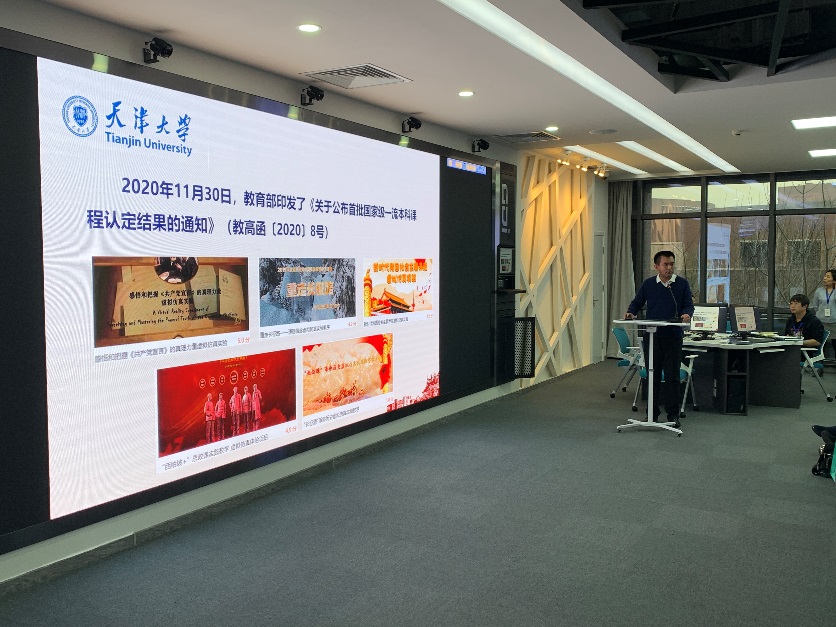 (通讯员 王磊)近日,教育部公布首批国家一流本科课程认定结果,我市共有六门思政课课程获得认定,涵盖“线上、线下、混合、实践和虚仿”五大类别,其中我校“思想道德修养与法律基础”、“感悟和把握《共产党宣言》的真理力量虚拟仿真实验”和“兴学之路——乡村振兴中的青春实践”三门课程联袂入选,入选数量居全市高校马院之首,位居全国高校马院第三位。为贯彻落实《教育部关于一流本科课程建设的实施意见》(教高〔2019〕8号)和《市教委关于公布入选首批国家一流课程名单的通知》(津教高函〔2019〕8号)的文件精神,加快建设与新时代人才培养需求相适应、与新技术相融合、与教育教学方式方法改革相配套的教育教学管理政策和机制,注重一流本科课程建设与应用优秀案例的推广,以“学习革命”推动“质量革命”向纵深发展,2020年12月21日,天津市高校思政课国家一流本科课程建设研讨会在天津大学虚拟现实实验教学中心召开。此次研讨会由天津市教育委员会学生思想教育与管理处、天津大学马克思主义学院主办,渠占辉名师工作室协办。全市十余所高校百余名思政课教师参会,马克思主义学院副院长张宇主持会议。