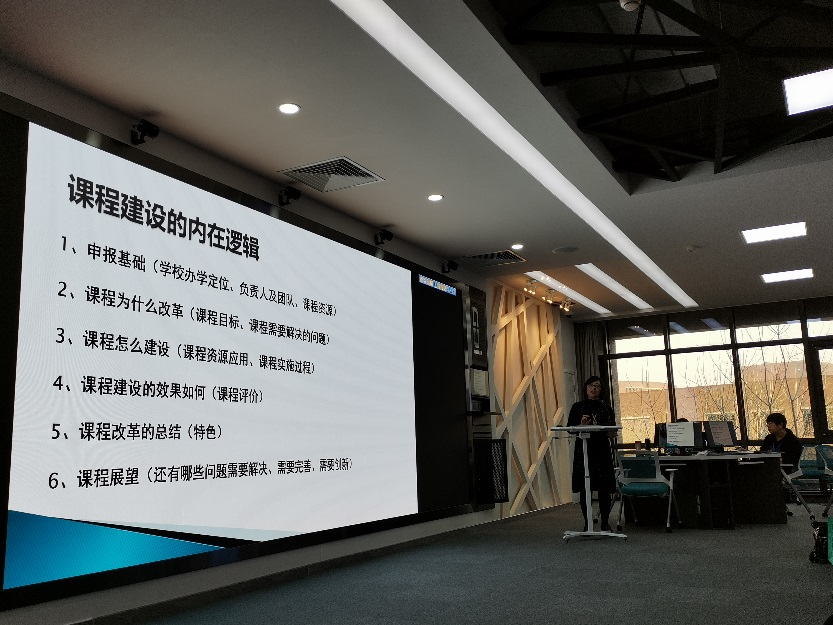 河北工业大学马克思主义学院高京平教授做“‘纲要’课线上线下混合式一流课程建设”的报告。她从“课程建设的内在逻辑”、“教学改革解决的重点问题”、“混合式教学的特色”等方面介绍了混合式教学推进的经验与做法。