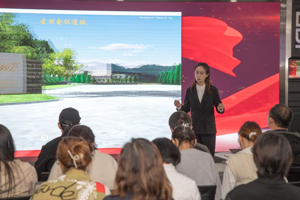 在比赛中,大学生变成了讲解员,红色场馆搬上了VR大屏。现场师生戴着VR眼镜,“身临其境”地漫游在红色场馆之中,倾听生动的党史讲解,感悟百年辉煌历程。周清明阳同学带领大家走进中共一大会址,以一篇俄文文献的讲解,感悟党的初心使命;孙超然同学和大家登上南湖红船,追寻建党初心;张立昌同学引领大家走进南昌起义纪念馆,感受那段峥嵘岁月。曾媛、姚晓雯、白玥、杨涵之、闫璟、白云涛和叶展鹏等同学都以虚实结合的方式,精彩地讲解了古田会议纪念馆、遵义会议纪念馆、抗日战争纪念馆、解放战争纪念馆、改革开放纪念馆和新时代纪念馆。讲解员的生动讲解让大家深刻认识到,红色政权来之不易、新中国来之不易、中国特色社会主义来之不易,深刻认识到中国共产党为什么能、马克思主义为什么行、中国特色社会主义为什么好,进一步坚定“四个自信”,增强历史定力,增强做中国人的志气、骨气和底气。