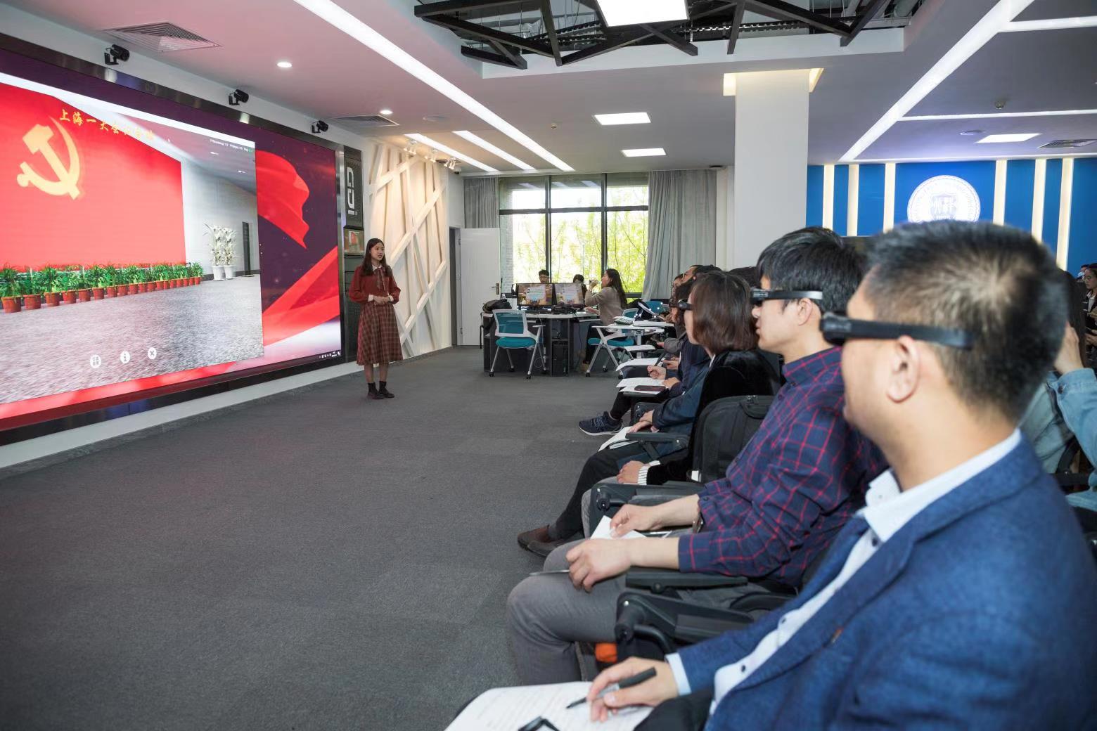 为迎接中国共产党百年华诞,贯彻落实习近平总书记在党史学习教育动员大会上的讲话精神,引导师生们深入学习党的光辉历史,激发师生们爱党、爱国、爱社会主义的巨大热情,推动思政课虚拟仿真实践教学的发展,4月14日下午,“建党百年铭初心 红色场馆我来讲”比赛,在天津大学虚拟现实教学中心成功举办。党委宣传部副部长李嘉毅、党委学工部副部长李京霖、教务处处长助理王磊、智算学部主任于健、马克思主义学院党委副书记靳莹等领导参会指导。此外,天津医科大学、河北工业大学、中国民航大学、天津中医药大学、天津科技大学、天津理工大学、西安外国语大学等高校师生莅临会场。