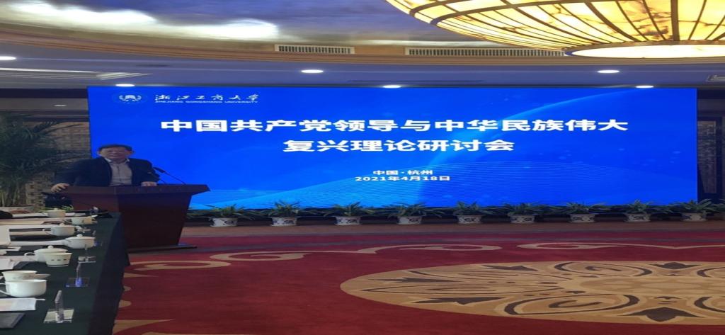 4月18日,由教育部习近平新时代中国特色社会主义思想研究中心、浙江工商大学主办,浙江工商大学马克思主义学院承办的“中国共产党与中华民族伟大复兴理论研讨会暨浙江工商大学党史党建教育研究中心成立大会”在浙江工商大学下沙校区国际会议中心举办。来自教育部高等学校社会科学发展研究中心、浙江省人大常委会、浙江省委宣传部、浙江省教育厅、天津大学、华东师范大学、中国人民大学、西南大学、北京师范大学,以及《人民日报》《光明日报》《经济日报》《中共党史研究》《红旗文稿》等机关、高校和重要媒体单位30余人参会。天津大学马克思主义学院院长颜晓峰教授、青年教师贺敬垒参加会议。