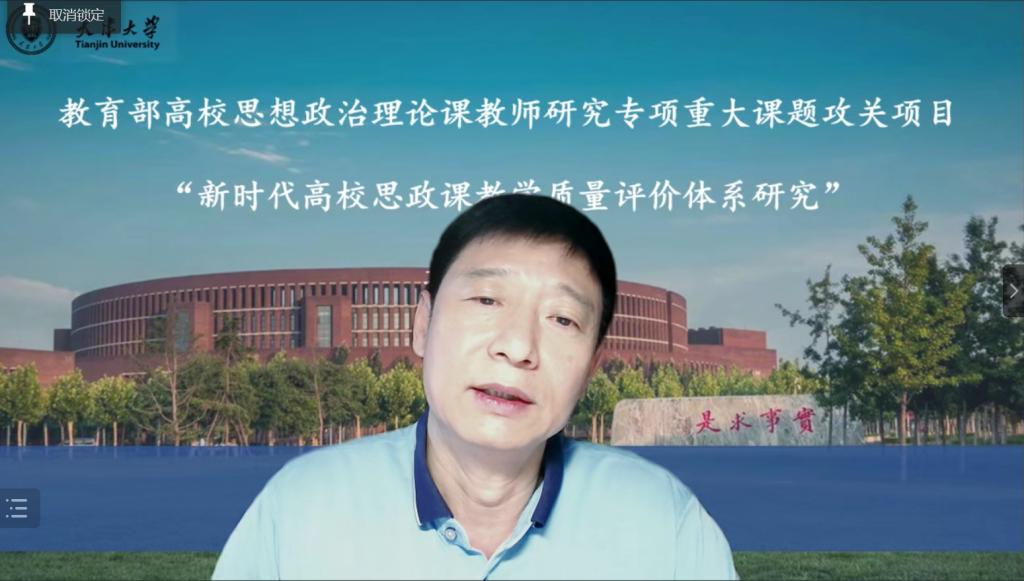 2022年7月11日上午9时,教育部高校思想政治理论课教师研究专项重大课题攻关项目“新时代高校思政课教学质量评价体系研究”项目研讨会采用线上线下相结合方式,在天津大学科学图书馆一层报告厅成功举办。