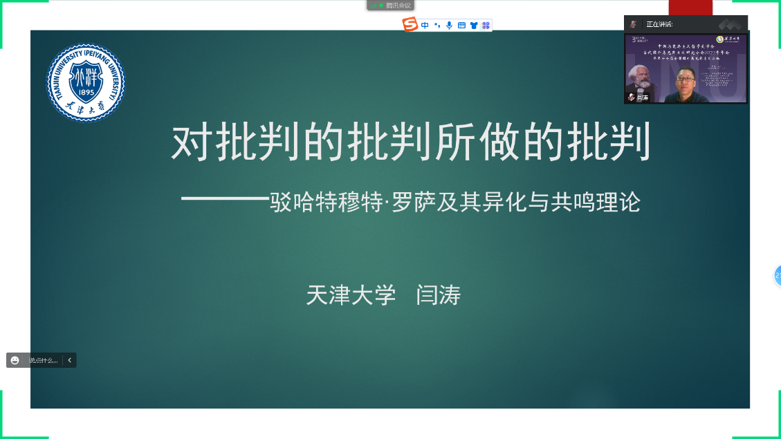 分论坛二“当代国外马克思主义的前沿问题研究”中,闫涛副教授以“对批判的批判所做的批判——驳哈特穆特·罗萨及其异化与共鸣理论”为题发言。他试图从马克思主义人学视角出发,批判罗萨的社会批判理论:呈现其理论的合理性,剖析其理论的先天缺陷,以期丰富马克思主义理论研究,复归人本逻辑,复归中国的现代化之路。如何化解异化关系,如何与世界构成共鸣关系成为摆在人面前的一个不可避免的问题。然而共鸣关系的构成难道只有像罗萨所说的触碰、自我效能、聆听、回应吗?恐怕解决问题的办法还需要进行深刻反思与批判。作为社会批判理论,特别是罗萨作为法兰克福学派的第四代代表人物的角度来讲,他的两个方面的理论在某些方面的分析和批判还未达到读者的预期,总有浮在表面的、浅尝辄止的感觉,让读者不能立刻感受到理论的深刻性和反思性。罗萨的社会批判理论总的说来是:分析问题不深刻,解决问题不彻底。
