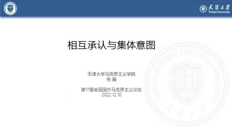分论坛一“当代国外马克思主义的前沿问题研究”中,张巍副教授以“相互承认与集体意图”为题发言。他指出承认理论同时关涉社会哲学、道德哲学与政治哲学。其中,关于社会本质的规范性讨论,与分析风格的社会本体论研究之间存在理论互动的空间。通过综合考察承认理论传统,以及当代行动哲学与认知哲学对于社会本体论问题的相关研究成果,我们可以认为相互承认是一种以行动为导向的实践态度,相互承认的实现必须基于某种社会协作。因此,相互承认的运作机制及其实现,重点就在于保证社会协作得以实施的集体意图。集体意图理论可以让关于相互承认的机制的阐述更为精致,而相互承认的理论阐述则可以揭示集体意图的缘起。总而言之,基于上述关于社会本体论的行动哲学与认知哲学探究,一种融合“我们中的我”与“我中的我们”的社会承认机制逐渐成型。