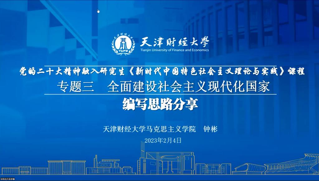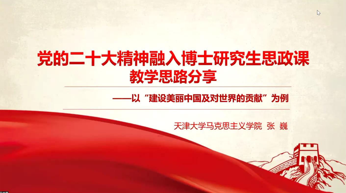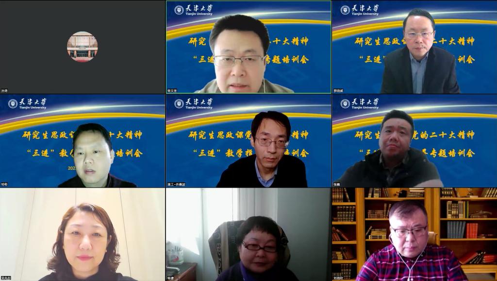 为深入学习宣传贯彻党的二十大精神,切实发挥思政课主渠道作用,有效推动党的最新创新理论进教材、进课堂、进头脑,确保思政课教师准确把握党的二十大精神“三进”教学指导方案内容体系和教学重点,天津市研究生思想政治理论课协同创新中心、天津大学马克思主义学院于2月4日举办“研究生思想政治理论课党的二十大精神‘三进’教学指导方案”专题培训会。此次专题培训会依托网络会议平台,吸引全市各大院校百余名思政课教师参加。