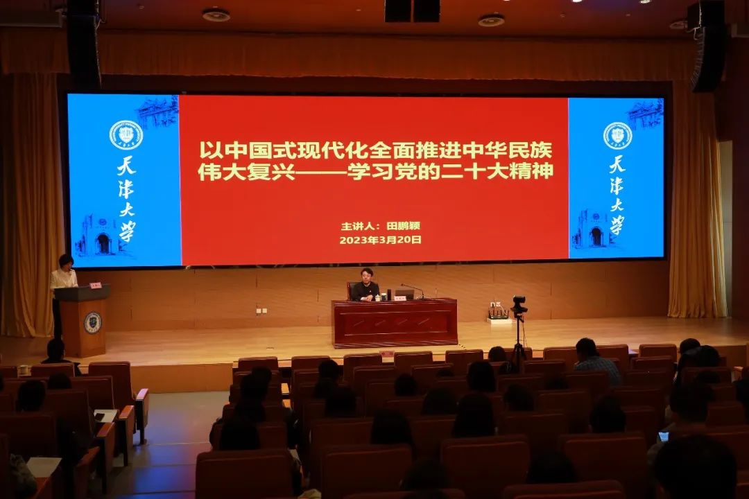 3月20日下午,由学校党委宣传部和马克思主义学院共同举办的“党的二十大精神理论辅导报告会暨天津大学思想时空论坛”在北洋园校区郑东图书馆南馆一层报告厅开讲。思想时空论坛是在学校党委指导下,依托马克思主义学院打造的高水平理论宣讲平台。东北大学马克思主义学院院长田鹏颖教授受邀担任本次思想时空论坛主讲人。本次论坛由天津市研究生思想政治理论课协同创新中心承办,远教学院提供技术支持,于线上同步直播。校、院两级党委理论学习中心组成员,马克思主义学院师生党员,中共宕昌县委、县直各单位党组织、各乡镇党委、各村党支部及党员骨干约2000余人聆听了报告。