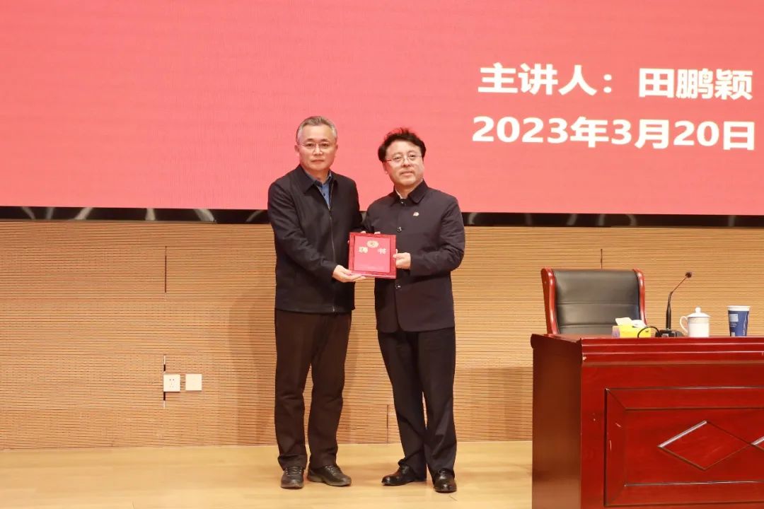 为进一步加强学校思想政治理论课改革创新与发展建设,指导、带动青年思政课教师不断成长,学校特聘任田鹏颖教授为天津大学思想政治理论课特聘教授,校党委常委、副校长郑刚代表学校为田鹏颖教授颁发了“思想政治理论课特聘教授”聘任证书。