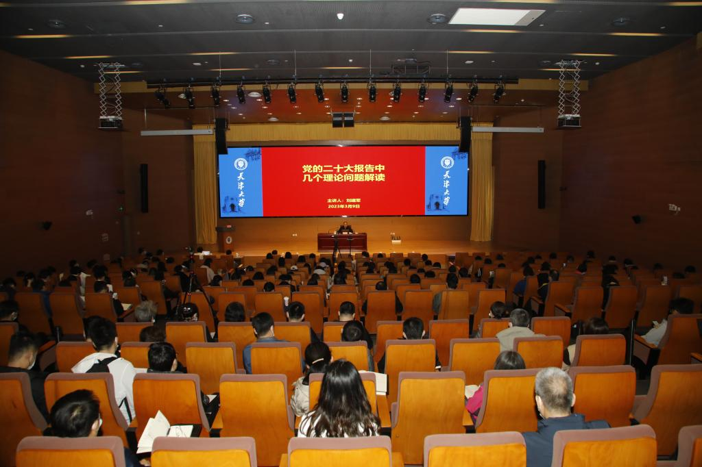 3月9日上午,由学校党委宣传部和马克思主义学院共同举办的“党的二十大精神理论辅导报告会暨天津大学思想时空论坛”在北洋园校区郑东图书馆南馆一层报告厅开讲。思想时空论坛是在学校党委指导下,依托马克思主义学院打造的高水平理论宣讲平台。中国人民大学刘建军教授受邀担任本次思想时空论坛主讲人。天津大学校党委常委、宣传部部长杨欢,马克思主义学院党委书记孙鹤,院党委副书记靳莹,院副院长杨文圣出席本次论坛。本次论坛由天津市研究生思想政治理论课协同创新中心承办,远教学院提供技术支持,于线上同步直播。校、院两级党委理论学习中心组成员,马克思主义学院师生党员,中共宕昌县委、县直各单位党组织、各乡镇党委、各村党支部及党员骨干约5000余人聆听了报告。