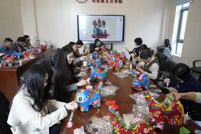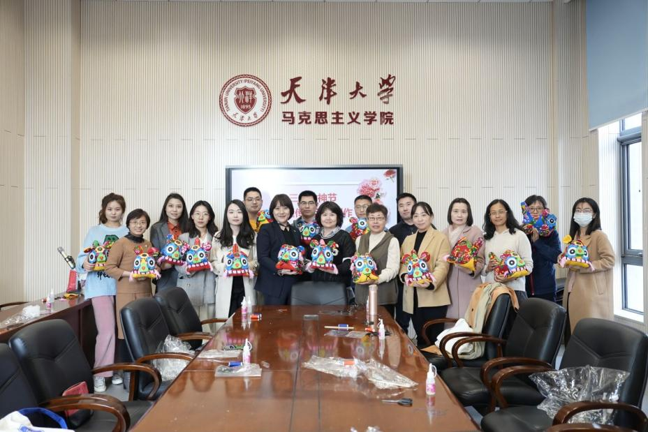 2023年3月7日,在国际劳动妇女节来临之际,为深入学习贯彻“两个结合”理论,将马克思主义基本原理同中华优秀传统文化相结合,结合我院学科背景以及天津的特色非物质文化遗产传统,马克思主义学院工会组织开展非遗传承布老虎制作活动,增强教职工凝聚力,为女教师们送上节日祝福。