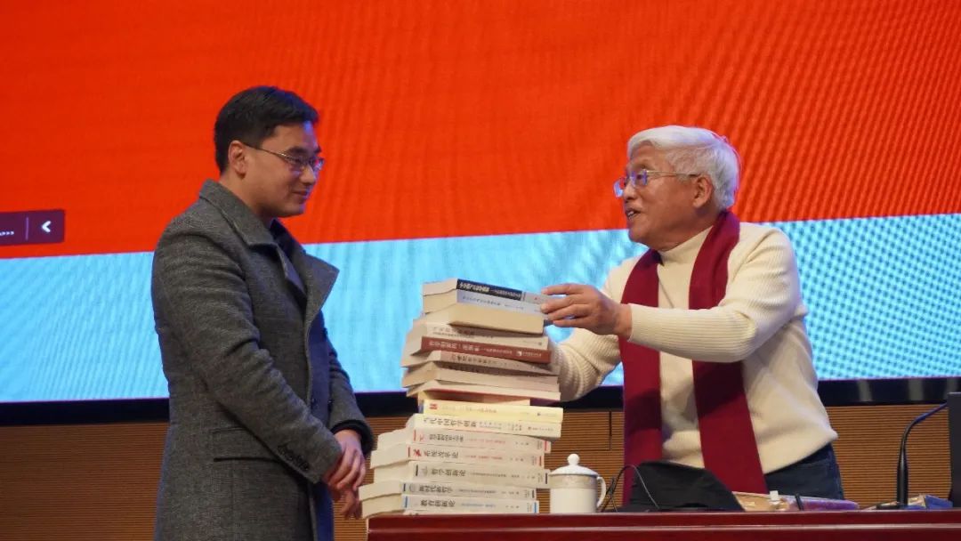 讲座期间,王东教授与在场师生展开“对话式学习”,针对师生们提出的“卡夫丁峡谷”、列宁关于新经济政策的论述、中国式现代化与中华传统文化的关系等问题作出精彩解答。王东教授现场将多部个人著作赠予学校,希望与天大师生一同寻根、铸魂、求创新。