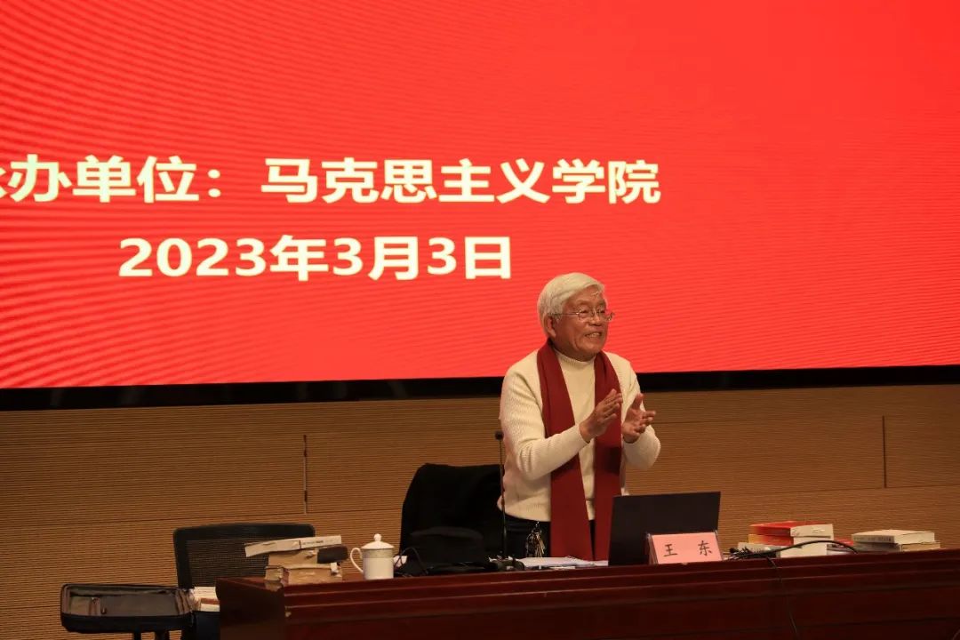 王东教授的讲座以“开创人类文明新形态——中国式现代化的文化哲学底蕴与世界历史意义”为主题,围绕六个方面展开:一是要深刻认识“两个创造”,即中国特色社会主义“创造了中国式现代化道路,创造了人类文明新形态”的理论创新;二是必须根本突破广泛流行的西方现代化理论,即把现代化分成西方内生先发式现代化和东方外生模仿式现代化两种模式的理论,要面向世界争得话语权;三是必须重新认识中国式现代化道路的曲折探索历程;四是通过分析当代世界七大危机与百年未有之大变局,呼唤超越西方近代文明的人类文明新形态;五是提出开创新时代的马克思列宁主义两大源头活水,即《资本论》与列宁的晚年创新;六是倡导从西方文艺复兴走向东方文艺复兴,指出突破西方近代文明、开创人类文明新形态是时代课题与中国使命。