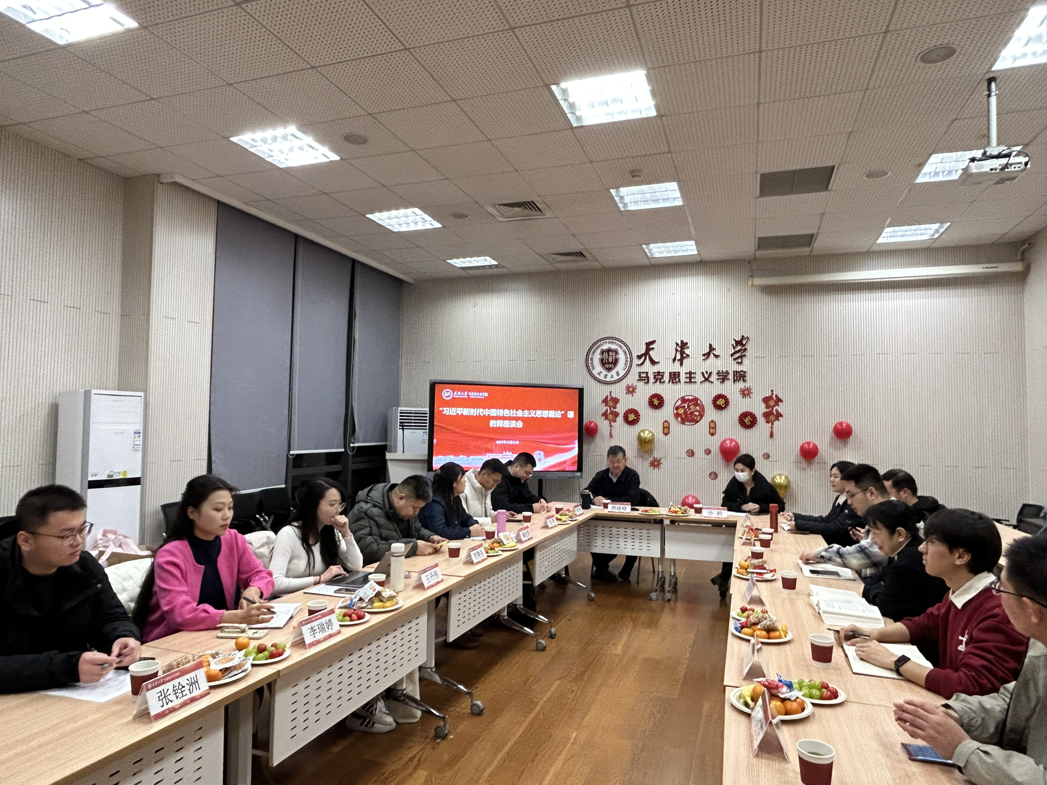 为充分发挥授课教师的集体智慧,促进授课教师之间的教学交流,着力打造习近平新时代中国特色社会主义思想概论“金课”,马克思主义学院于2024年12月31日举办“习近平新时代中国特色社会主义思想概论”(以下简称“概论”)课教师座谈会。学院院长颜晓峰、党委书记孙鹤、参与授课的老师们欢聚一堂,在欢乐活泼的氛围中畅所欲言、为概论课教学工作的不断改进提出宝贵意见。座谈会由概论教研部主任柳兰芳主持。