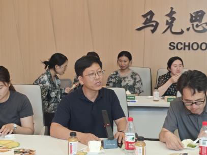 第二个环节是教师座谈交流,由学院参与出国访学和组织社会实践的老师分享经验。闫涛老师带着从剑桥大学社会学系访学归来的满满收获,与大家畅谈国外访学的见闻和感受;周滨老师代表马克思主义基本原理教研部分享了前往广州、深圳开展实践学习的经历,收获了丰富的知识和深刻的情感体验,并将这些感悟巧妙地应用于思政课教学中;张凯峰老师代表中国近现代史纲要教研部分享了前往丹东学习培训的感想,此次培训不仅为教学注入了新的活力,也让大家更加深刻地认识到历史的厚重与现实的珍贵。