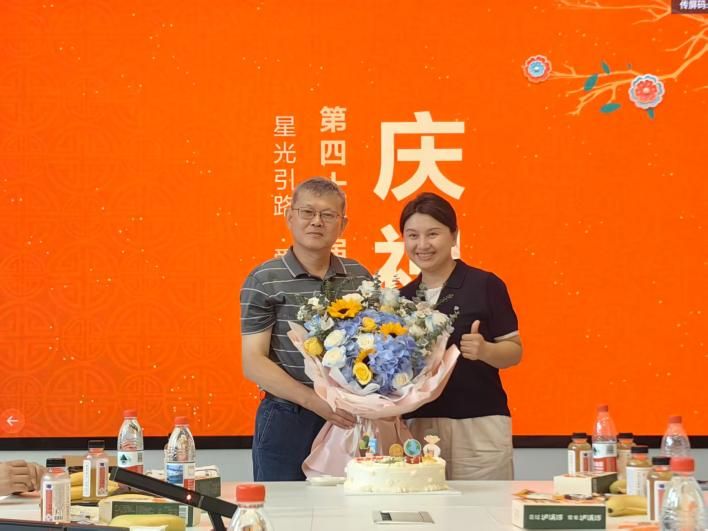 第一个环节为荣休仪式。学院党委书记孙鹤为本年度荣休教师周滨献鲜花并合影留念。周老师深情地表达了对学校和学院的感激,感恩学院给予的平台与支持,也感谢教研室老师们的无私帮助。他用真挚的话语、动人的故事,讲述着自己在教育道路上的坚守与付出,并满怀期待地表示,未来希望能与同事们继续保持这份深厚的情谊,这份情谊是岁月沉淀的宝藏,是教育路上最美的风景。